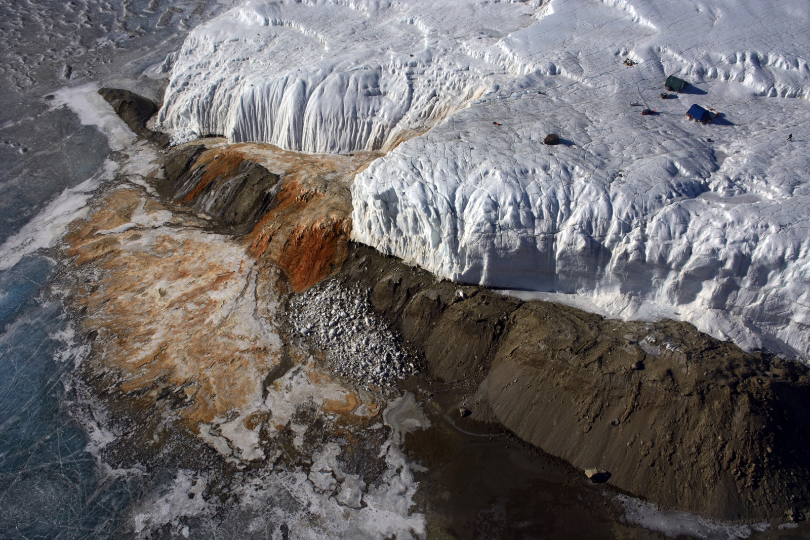 Pod antarktickým ledovcem Taylor se nachází uzavřené rezervoáry neuvěřitelně slané nezamrzající vody. Navíc je v ní uvězněn unikátní ekosystém bakterií, které tam žijí bez světla a téměř bez kyslíku už miliony let.