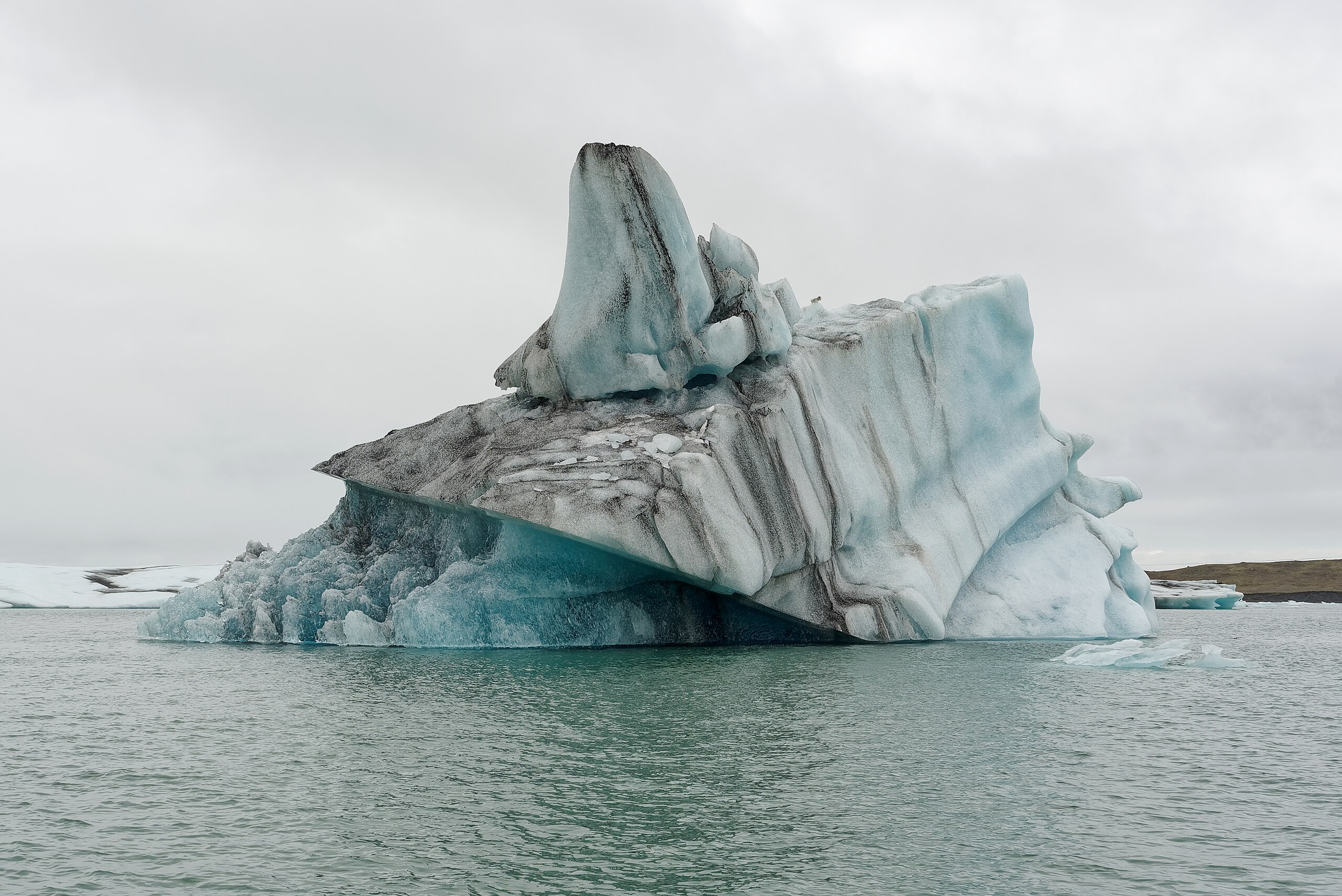 Tyrkysový led jaký se vyskytuje třeba u Islandu v Jökulsárlón je modrý led zabarvený žlutohnědými sedimenty skal pod ledovcem a černým prachem ze sopečných erupcí.