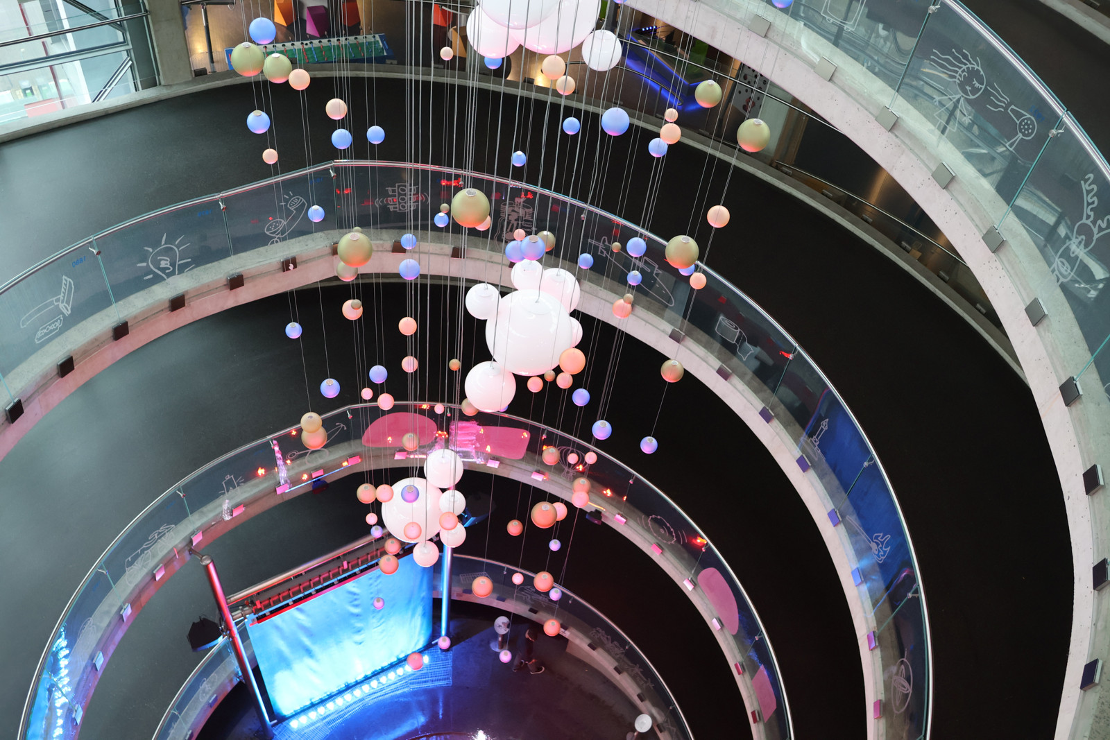 Hned u vchodu se děti, ale i pro dospělí, vyblbnou s ovládáním fontány s hudebními a světelnými efekty a kreslením tvarů, které se promítají do vodní stěny. Samozřejmě nechybí klasické vodní hrátky s hrázemi stavidly. Bacha ať nejste hned celí promáčení :-). Našeho puberťáka tohle nebralo. Po té co k nám konečně dorazil taťka, vystřelil jak raketa nahoru.