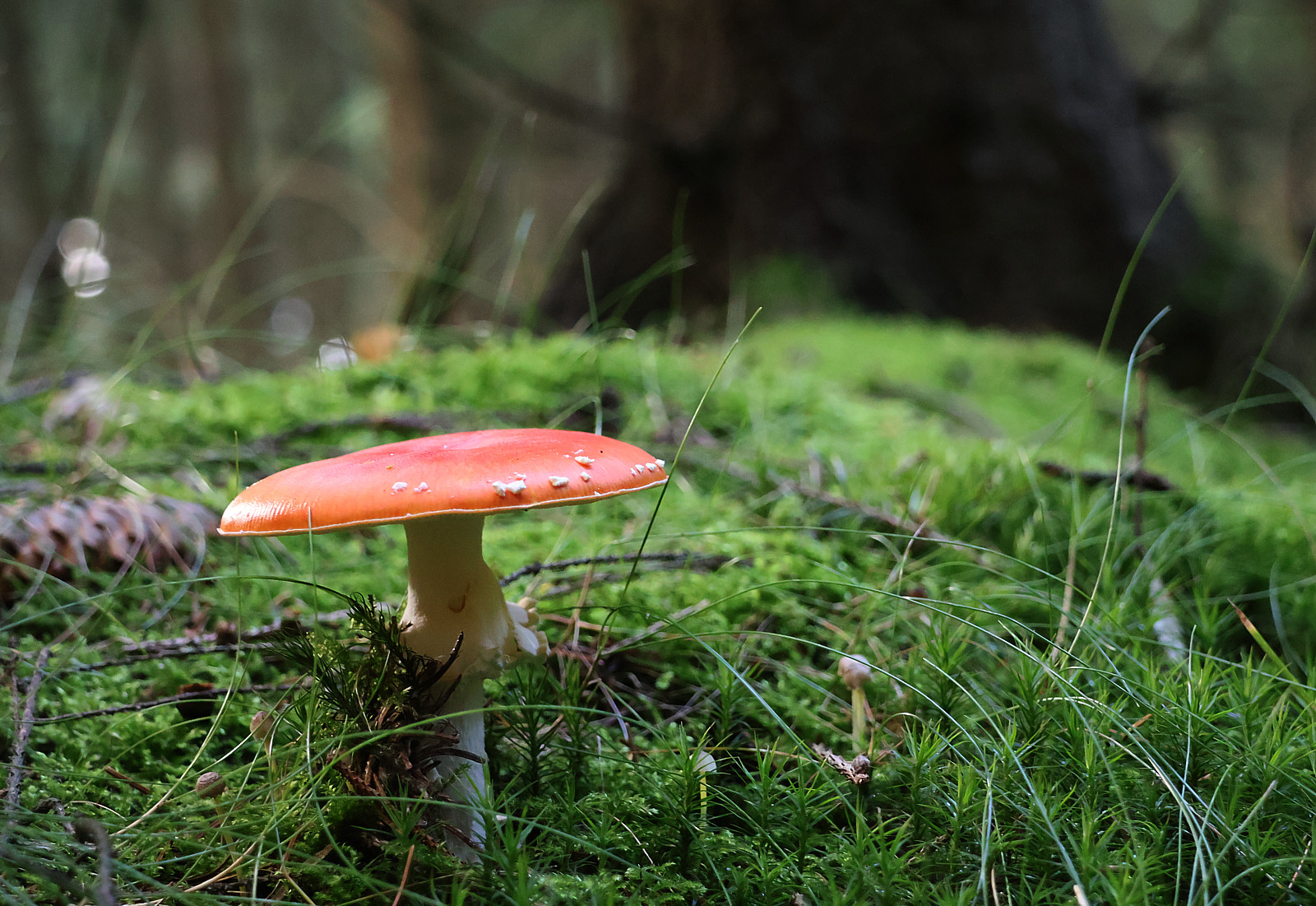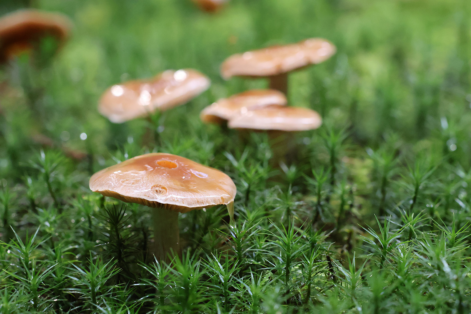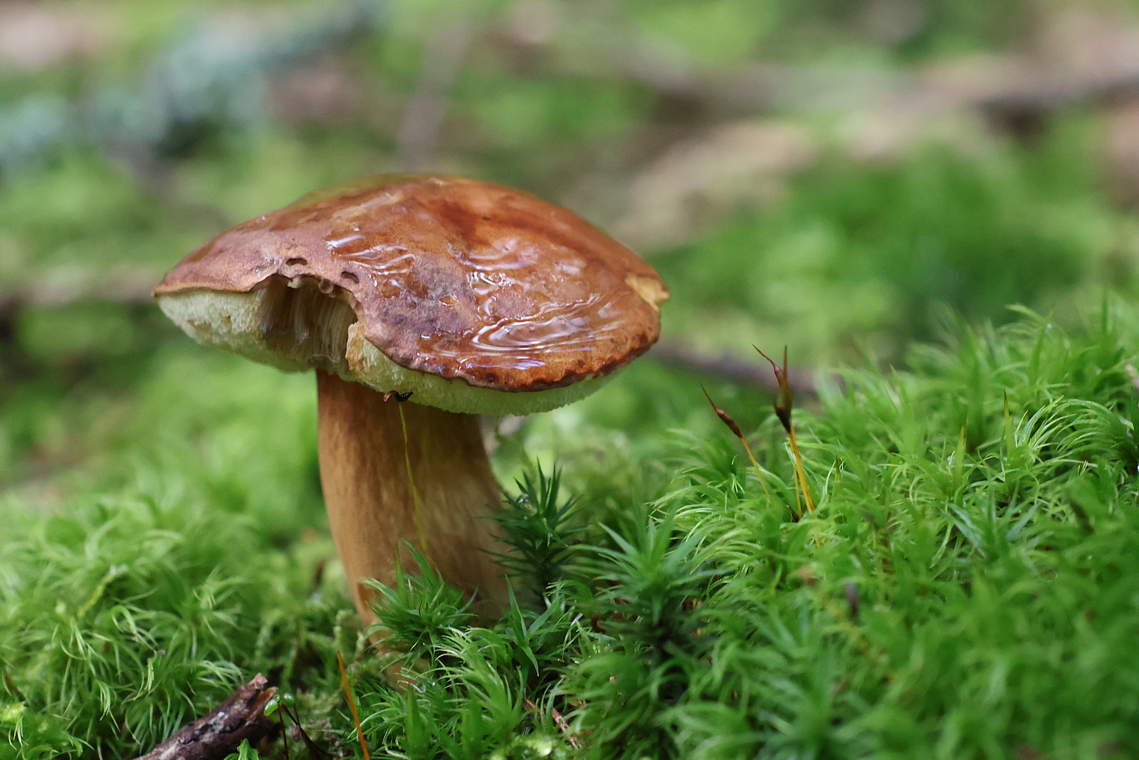 Právě to, že se k houbě snížíte vám umožní dodat fotce perspektivu. Aby houba krásně vystoupila a pozadí se stane příjemně rozmazaným, musíte použít nízkou hloubku ostrosti. Tu dosáhnete nastavením nízké clony, například f/2.8 až f/5.6. Dosáhnete toho i tak, že si houbu přizoomujete, použijete delší ohnisko. Fotky, které tu vidíte jsou focené na ohnisko 80 – 150 mm fotoaparátem Canon EOS R10 s objektivem RF-S 18-150mm IS STM.