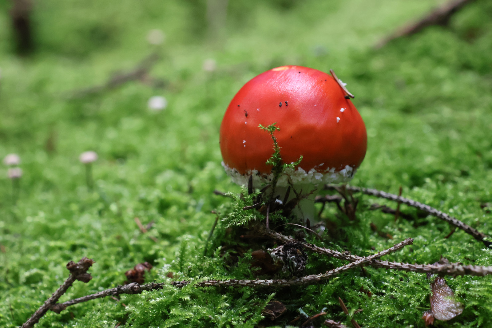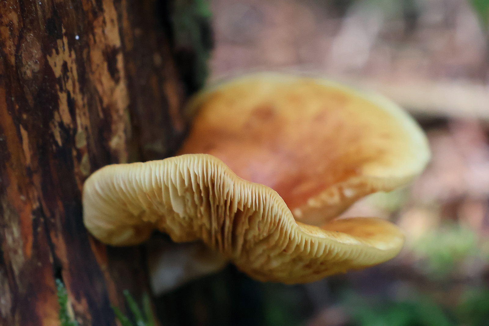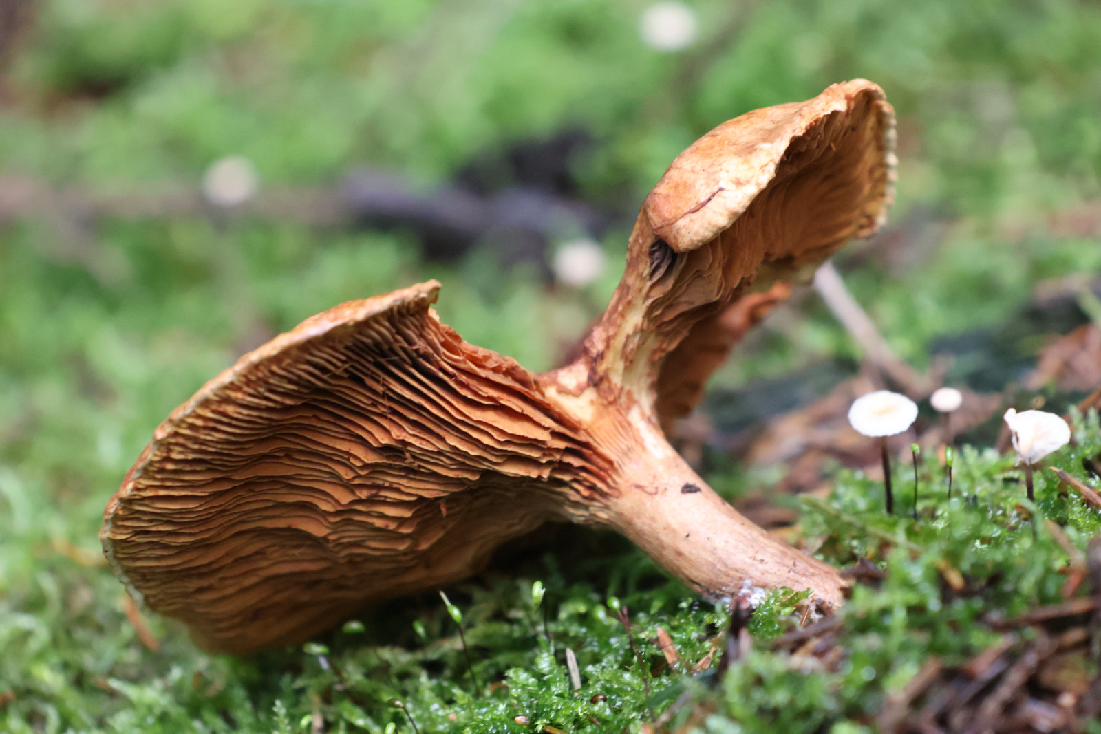 Právě to, že se k houbě snížíte vám umožní dodat fotce perspektivu. Aby houba krásně vystoupila a pozadí se stane příjemně rozmazaným, musíte použít nízkou hloubku ostrosti. Tu dosáhnete nastavením nízké clony, například f/2.8 až f/5.6. Dosáhnete toho i tak, že si houbu přizoomujete, použijete delší ohnisko. Fotky, které tu vidíte jsou focené na ohnisko 80 – 150 mm fotoaparátem Canon EOS R10 s objektivem RF-S 18-150mm IS STM.