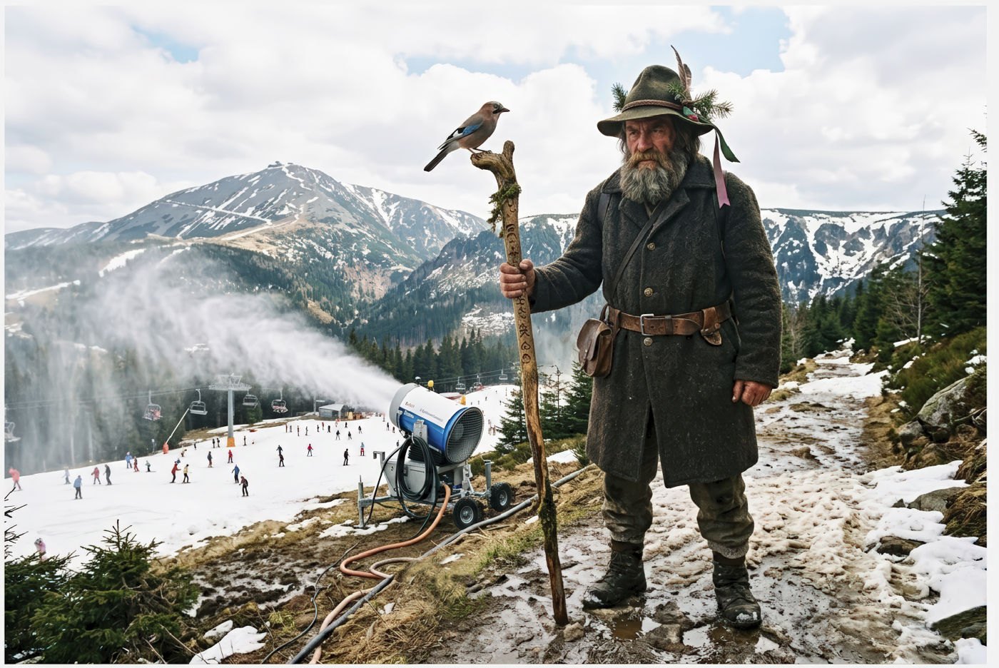 Krakonoš a lyžaři.
